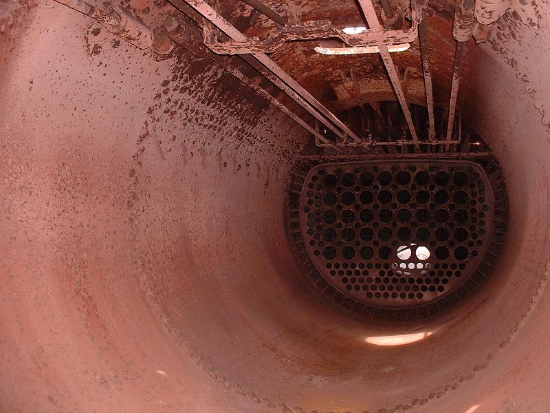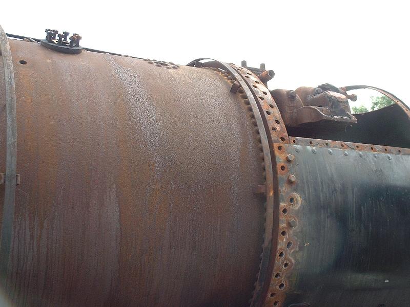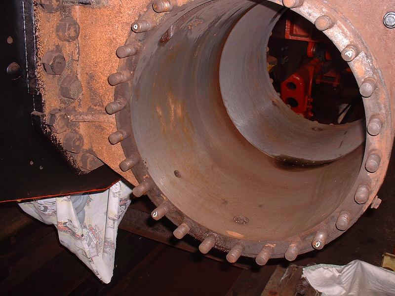 the smokebox is in the process of being separated from the boiler, removing the double row of rivets that were wrongly drilled on the model |