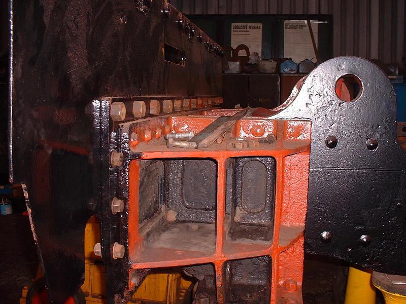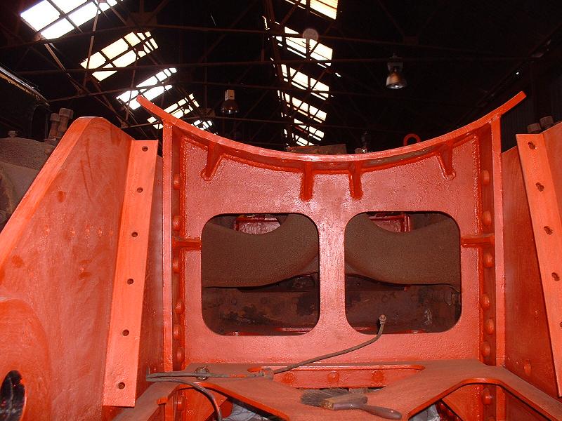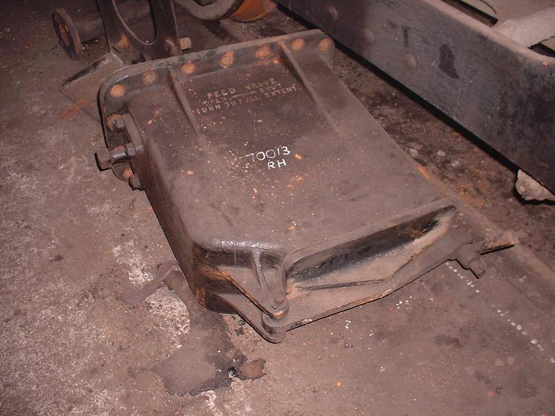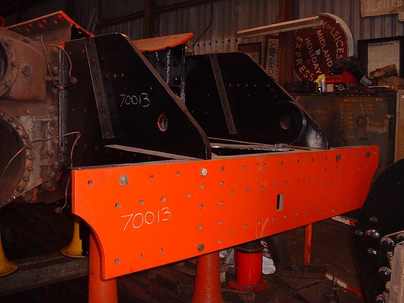 the rear beam seen from the rear - contrary to what I said under kit 6 on 23/1/06, the large plate is bolted on the rear of the smaller plate - but I think this is an error in the restoration, because I have a book with a photo of 70013 taken in 1967 which clearly shows it the other way round, as on 70000