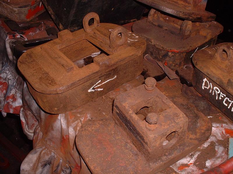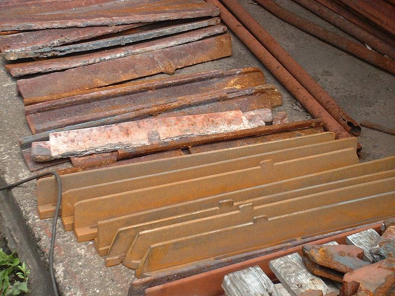 a set of what I assume are new grate bars, with the old ones in the background, along with some old boiler tubes |