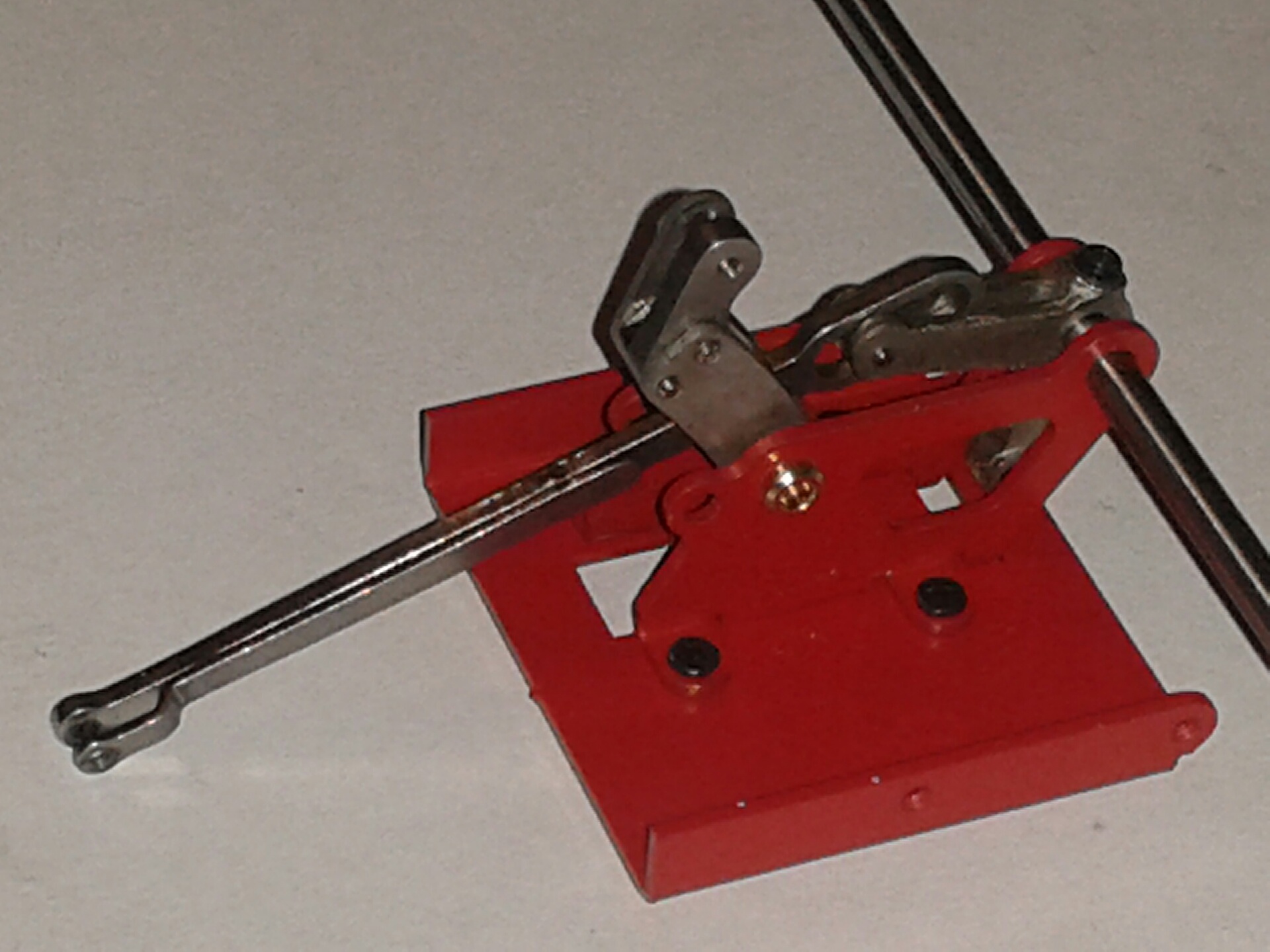 I've finished the left-hand motion and fitted the reversing gear. Although there's no adjustment in the length of the reach rod, the mid position on the reverser screw and the mid gear on the motion match perfectly, which is a tribute to the overall accuracy of Aster's components. Full movement of the screw doesn't move the radius rods quite to the ends of the expansion link, and the valve inlet ports are not quite completely uncovered in full gear, but I think it's close enough.