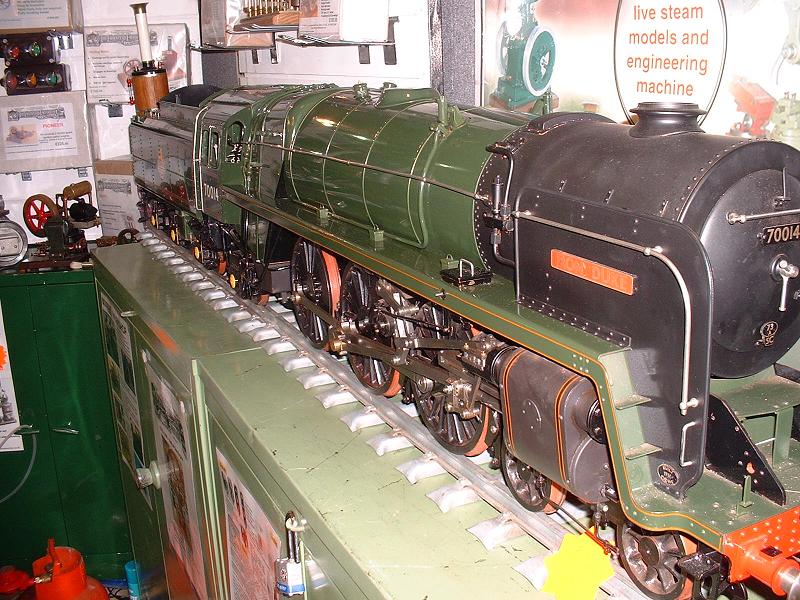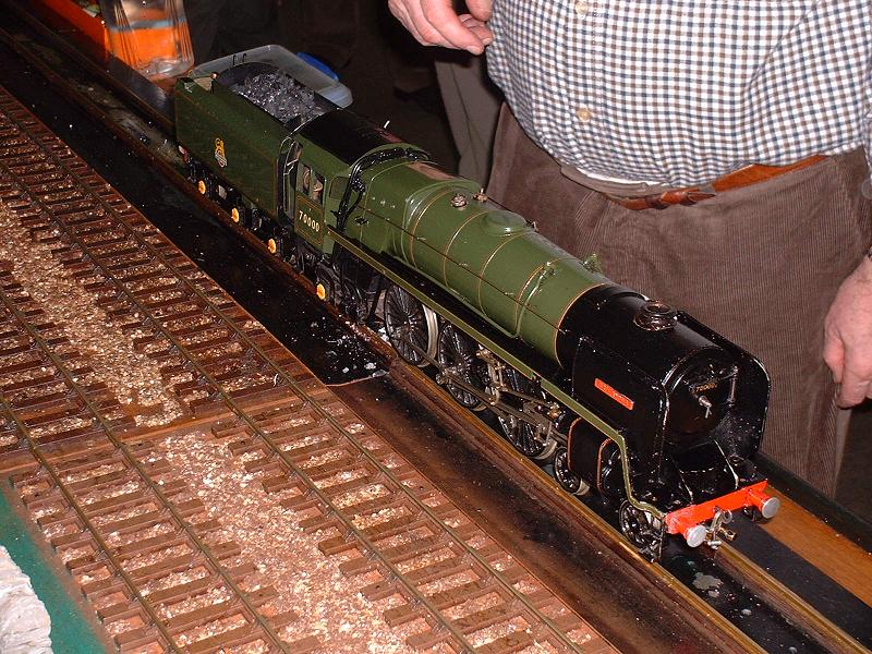 I spent today at the Alexandra Palace exhibition, and successfully recovered my Britannia at the end of the day. It had to be manhandled from stand to trolley and trolley to car because we didn't have a jacking trolley available, and it suffered minor damage to one of the rather delicate Doug Hewson front steps as a result, but I think this is repairable. The whole process of exhibiting is rather nerve-wracking and I probably won't do it again. The exhibition was quite enjoyable and I thought that one of the highlights was the demonstration of the gas turbine powered locomotive - the turbine has an idle speed of 50,000 rpm and top speed of 160,000 rpm! There was a nice 7 1/4" Winson Britannia with lots of enhanced details, almost completed, and another 5" Britannia which I'd also seen at Sandown Park before Christmas and which won a silver medal about 20 years ago. I met another Modelworks Britannia builder who hadn't previously been in touch - he still has some way to go to complete his engine, but is hoping to make quicker progress once he retires.