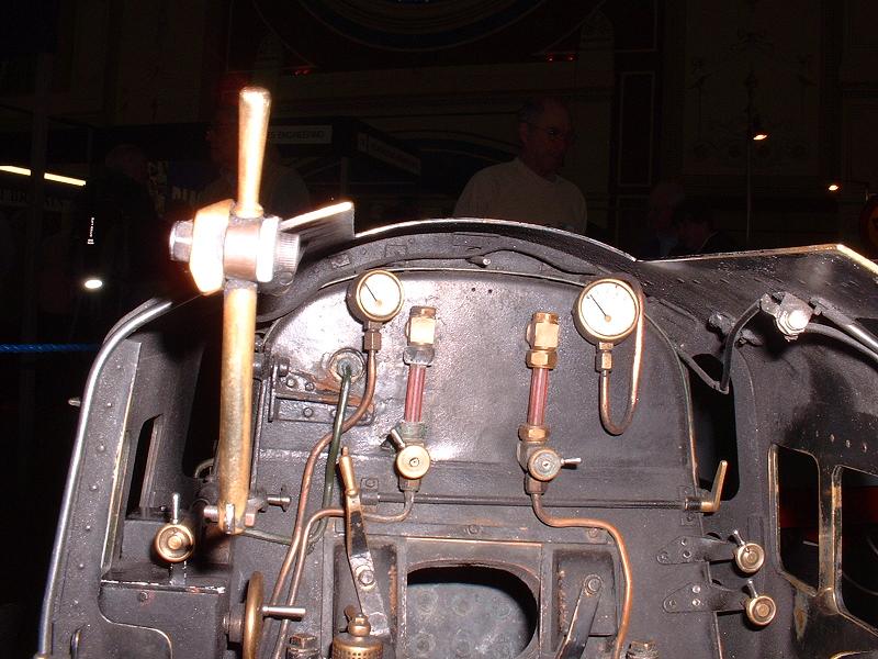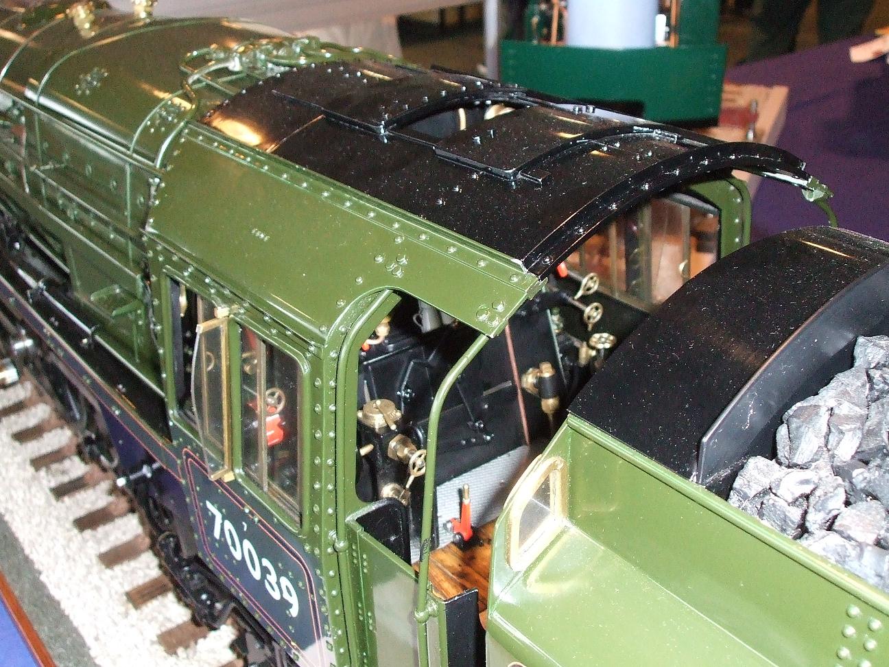 I visited the Model Engineering exhibition at Sandown Park today. The main reason for going was to see Rod's Britannia, which he had entered in the competition, and he won first prize in his class - very well deserved, since his model looks superb and was attracting a lot of admiration. He has added a lot of additional detail beyond what I've added to mine - including: