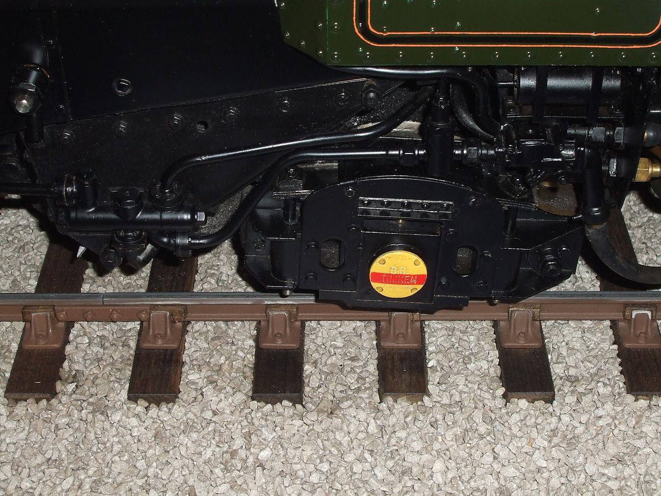 - AWS (Automatic Warning System) equipment was fitted in May 1959 - this comprised a circular contact shoe on the front of the bogie, a protective 'bash plate' behind the front coupling, a pipe running under the left-hand footplate to an air tank under the driver's side of the cab, and a battery box on the right-hand footplate in front of the firebox
