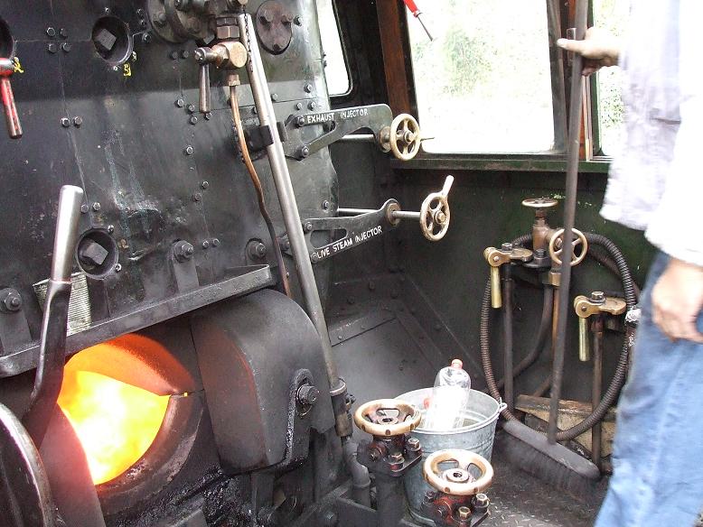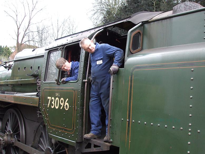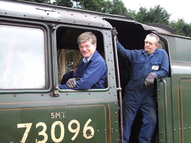 We're just back from a day's 'Advanced Driving Experience' at the Mid-Hants or 'Watercress' Line, which my kids bought me for my birthday. This was a brilliant day out, which I can highly recommend. There were six of us taking turns at driving and firing on three return trips between Alresford and Alton, a distance of about 10 miles each way, with two intermediate station stops and quite steep gradients to contend with. We drove a BR Standard Class 5MT - I was initially a bit disappointed that they weren't running their Merchant Navy class Pacific, but in fact the 5MT is closer to the Britannia in the sense that the cab controls and the valve gear and many of the other fittings are almost identical, and the tender is also almost the same. We hauled three carriages, accommodating just friends and family, so the load was not too demanding but even so one of my fellow trainees managed to spin the wheels by over-enthusiastic use of the regulator when pulling away. As fireman I shovelled the coal and operated the injector, although I found it quite difficult to place the coal evenly across the grate to the real fireman's satisfaction - not helped by confusion as to whether the 'back' of the grate was the bit nearest to me or furthest away. As driver I had full control of the reversing gear, regulator, steam cocks and the steam and vacuum brakes, although for some reason the instructor was very protective of the blower valve. The most difficult part of the driving was coasting down the steep gradients and adjusting the vacuum brakes to keep to the 25mph speed limit - compared to this, pounding up the hill was easy. The loco took a surprising time to react to movements of the controls - it took several seconds after cracking open the regulator for the steam pressure to show up on the cylinder gauge, which tended to make one open it further than intended. Likewise it took time for the vacuum to rebuild after releasing the brakes, which made it difficult to slow down by just the amount intended. A bit like steering a yacht, really.