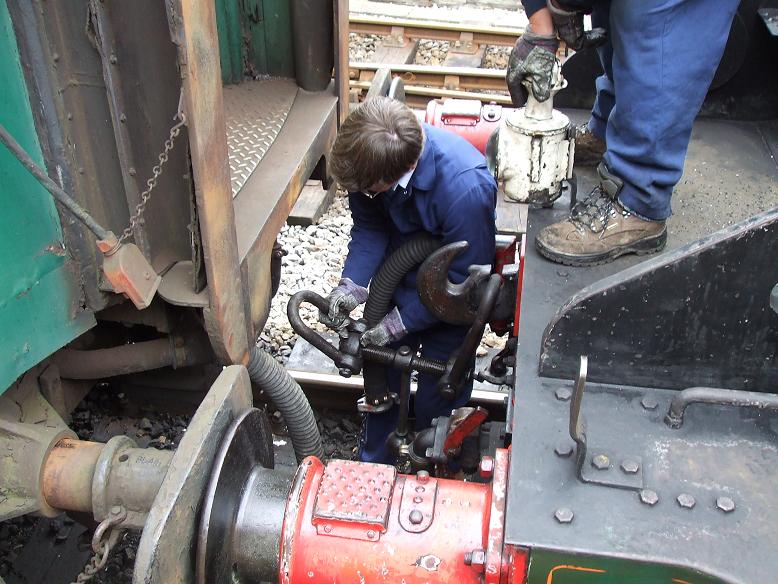 now where does this go? - coupling up the front of the loco to the carriages for reverse running back from Alton |