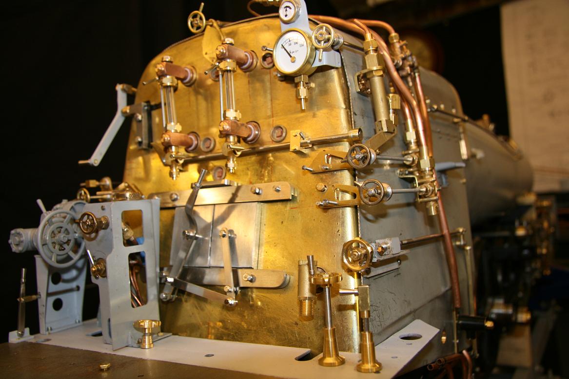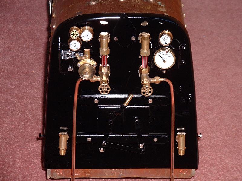 I'm still waiting for the transfers from Phoenix - apparently they have run out of cabside numbers - but in the meantime I've completed the lining of the running boards and I've planked the cab floor as shown in this photo. I've also fitted a few remaining items such as the speedometer (fitted on a bracket attached to the pivot bolt of the regulator handle) and the copper pipes running forward from the water filter boxes on the tender sides. Once the transfers have been applied I should be ready to start preparing for a steam test on the rolling road, over two years since I last steamed.