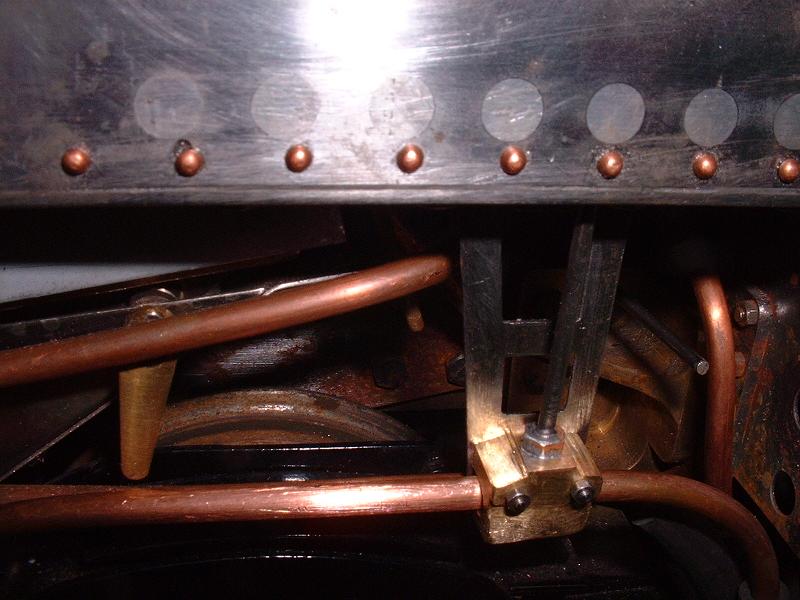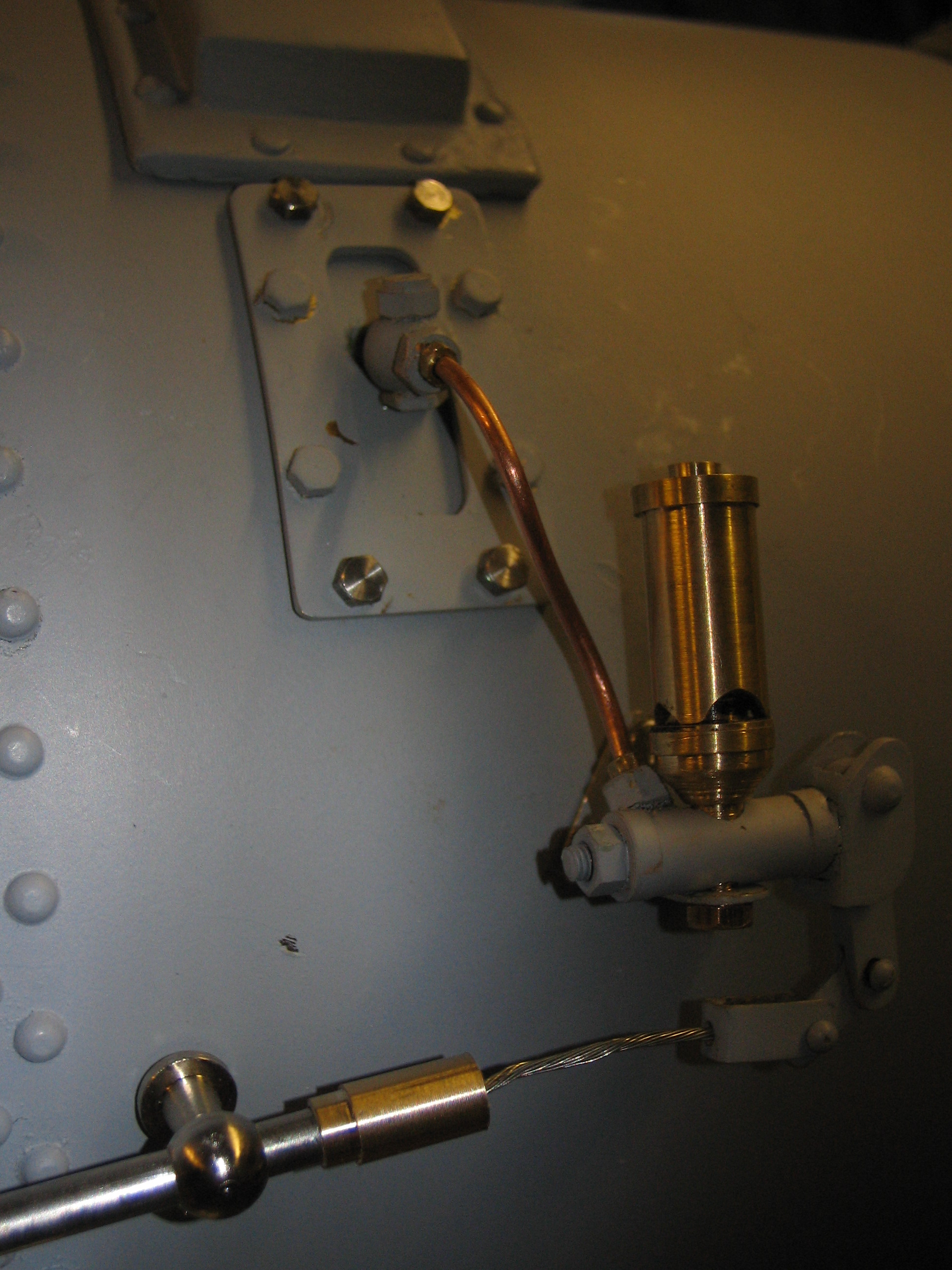 1/7/10 I discovered that Macc Models sell metal in 24" lengths, so I ordered some 5/32" steel rod from their website the evening before last and it arrived this morning - very good service. I've cut an M4 thread on this (5/32" is just under 4mm) and a matching M4 thread in the existing brass clevis, and it pushes the regulator closed using the original 8mm crank with no hint of flexing. I'll also need to make a new intermediate bracket to get the rod parallel to the handrail, having raised the mounting for the bracket to line up with the holes in the boiler cladding.