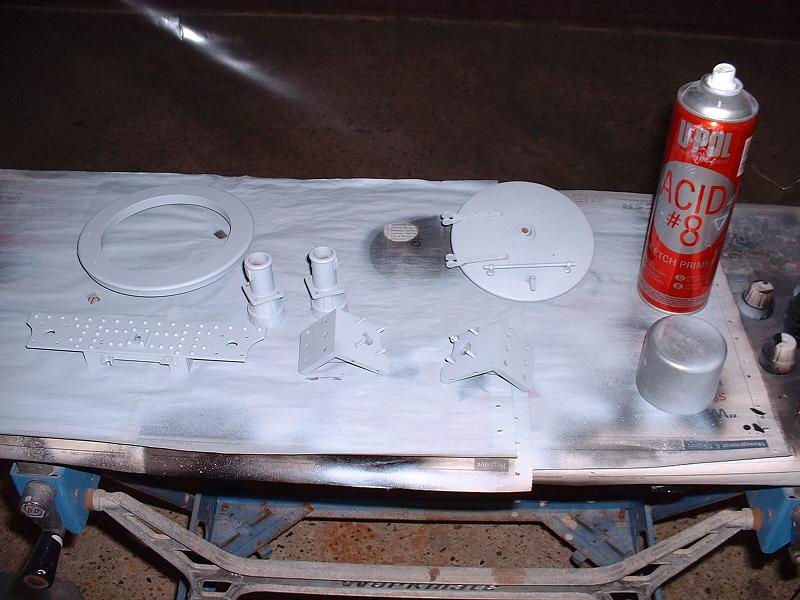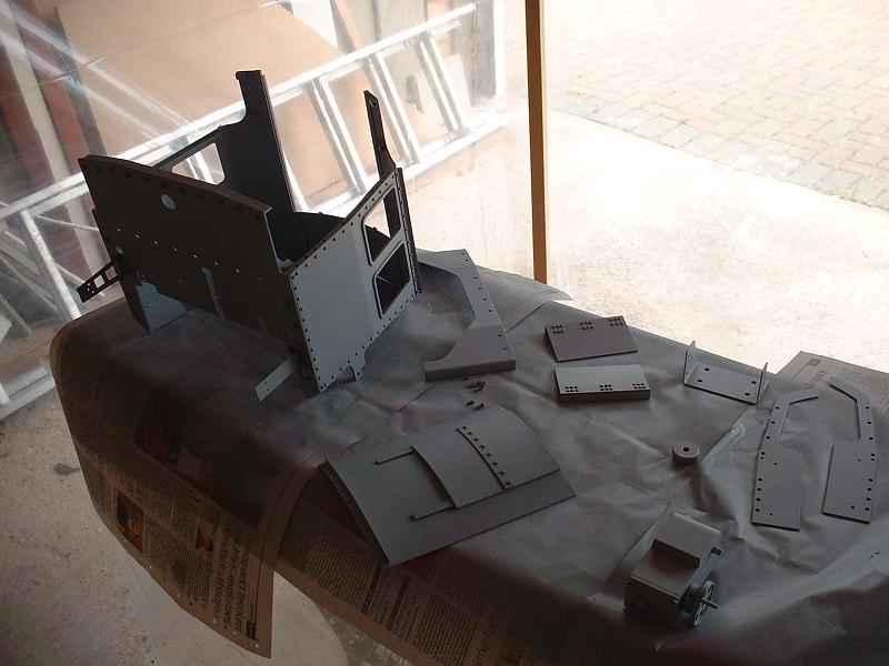 1/6/09 I've finally run out of excuses for not getting on with the painting - the weather is certainly warm enough now, and my wife is away this week so we can't go sailing (although we had a brilliant sail at the weekend). So I've been polishing up the cab components today, and I'll etch-prime them tomorrow.