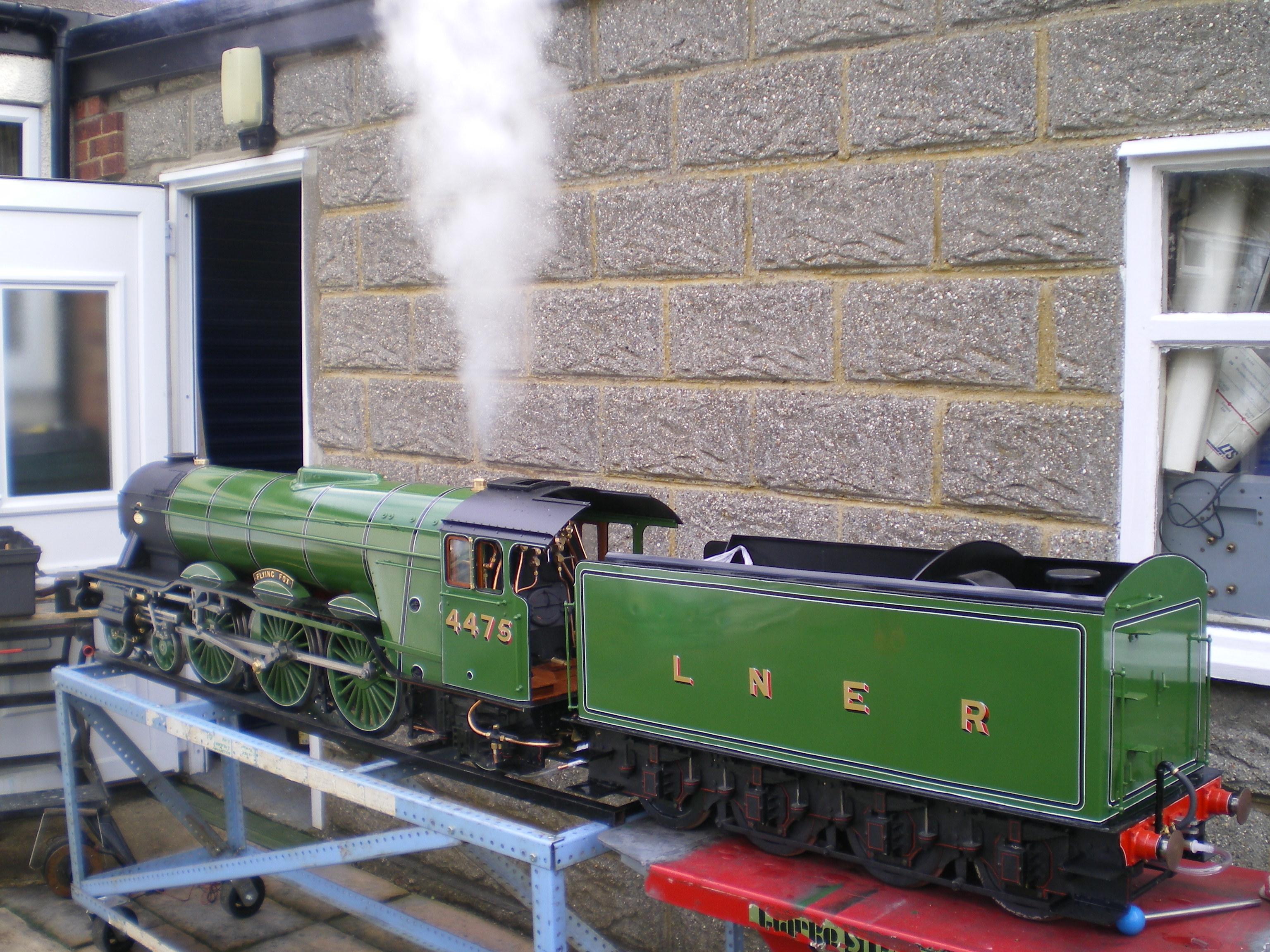 25/3/10 Brian B has sent me photographs of his superb 7 1/4" gauge Modelworks A3 'Flying Fox', which is nearing completion. The locomotive is here and the tender here. Brian is also building 7 1/4" A4 'Sir Nigel Gresley', finished in the blue livery with red wheels of the original preservation. It's very pleasing to see that the A3 and A4 builders have been able to complete their models after the demise of Modelworks, with the help of Wilkev Engineering who produced the final kits.