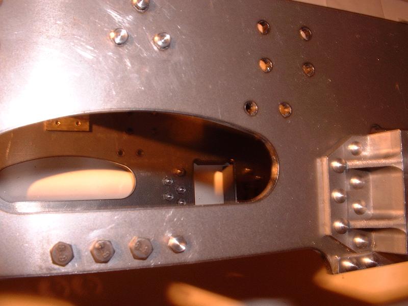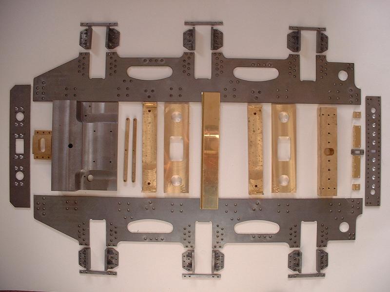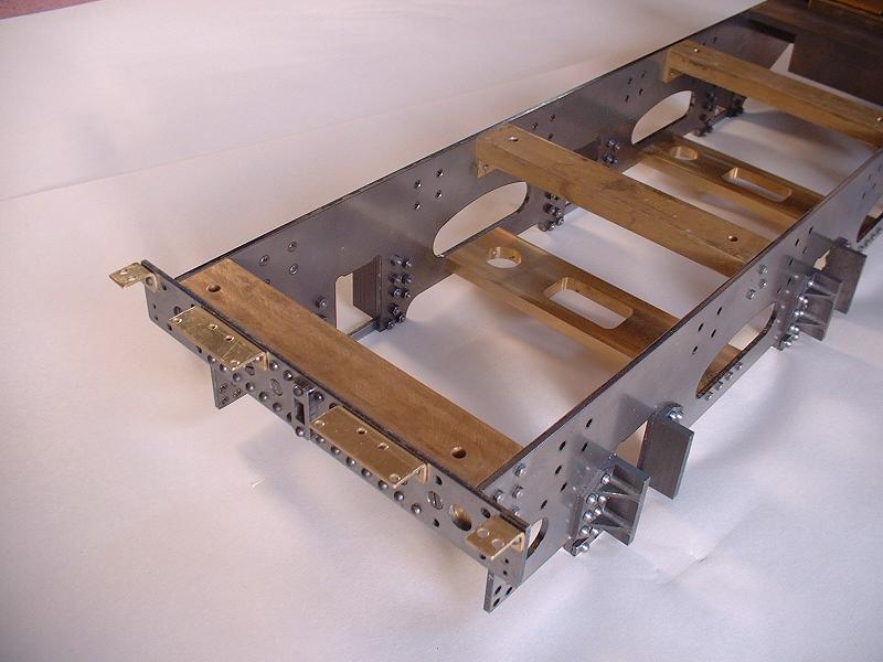 7/11/05 I visited Chronos in Dunstable to buy some files and other hand tools, and ordered some M3 bolts with smaller heads from Polly Model Engineering. I cleaned up the holes in the frames and assembled the horn cheeks, stays, stretchers and buffer beam mountings. I must say that the frames do not look at all bad with the bolts supplied, but I will decide what to do when the smaller bolts arrive.