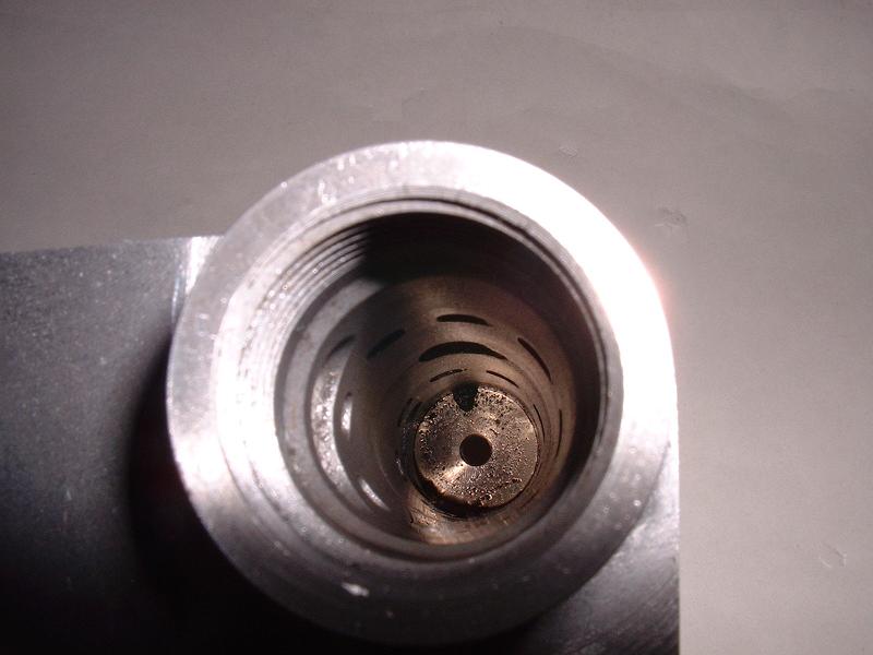 12/4/06 I finished polishing the first cylinder and its valve guides. After a bit more working to and fro by hand, the valve piston now slides fairly easily without needing any end play on the bobbin - I've set the locknuts just slack enough to allow the bobbin to slide sideways and align itself in the bore.