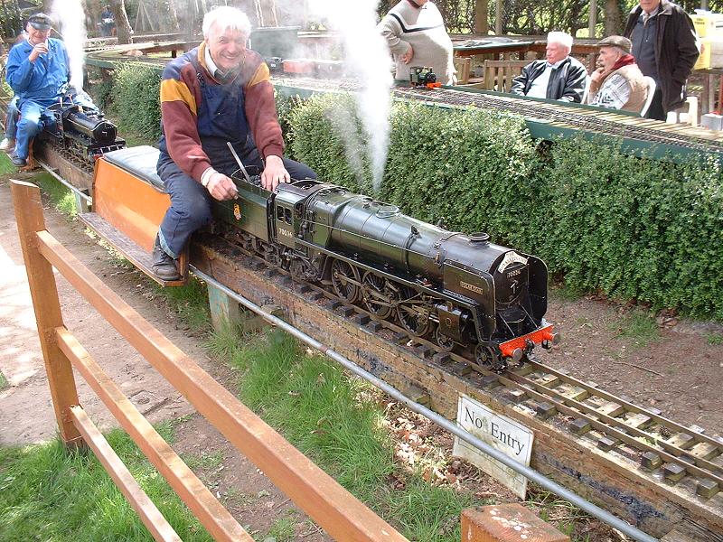 24/4/06 I finished polishing the left rear coupling rod and started on the left front one, filing the fish-belly to the same dimensions. It's difficult to polish the front boss because the front bearing has for some reason been glued in at the factory and the end of the bush projects slightly. I've emailed Debbie to check whether it's OK to heat the bearing to break the glue joint and remove it in order to polish the boss properly. I also intend to remove the oiling boxes from above the knuckle pins at the rear of the front coupling rods, since they are not present on the full-size locomotive as can be seen in the photograph of 70000 referenced above.