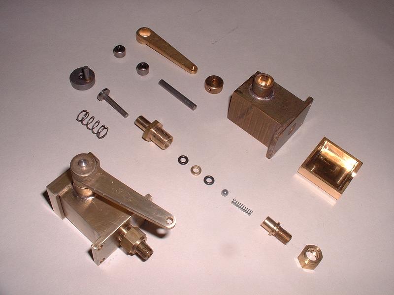 25/5/06 I assembled the second lubricator. Debbie responded on the question I raised on 23/5 about the reverser screw, saying that she would look into it further but that she personally favoured putting a retaining screw into the front of the reverser screw as on the control model. I also checked with George, who has the earlier Winson version of the Britannia - he says that the arrangement is the same, and he has not had problems with it. Perhaps when the valve pistons have been run in and the motion is less stiff, there is less tendency for the radius rods to lift. I'll leave it as it is for the time being. Debbie also told me that she is sending out sets of cylinder cocks today, but these have not been drilled and they will be replaced later (unless people want to drill them themselves). However, I guess they will be useful for testing on air, and they will also prevent the oil that I put into the cylinders from dribbling out of the empty holes.