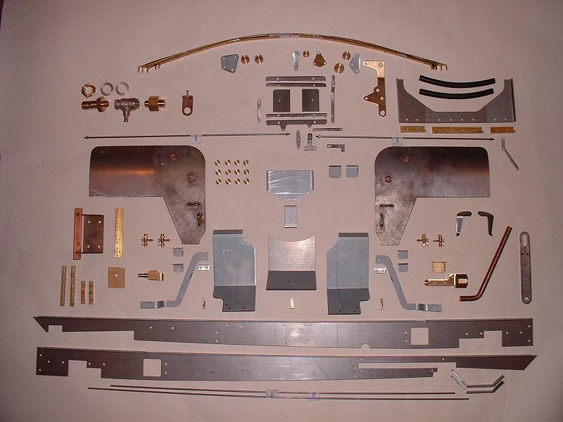 2/2/07 The first step in the instructions is to fit the lagging, but I don't intend to do this until I have the cladding - the lagging is pre-cut to shape and looks as though it will need only minor trimming, but it would seem safer to leave this until the cladding is available to check the fit. This leaves the platework and running boards as the first task. The smoke deflectors have been nicely made to the correct design for 70013, with two cutout handholds with cups brazed behind and two small handrails at the lower front, although they can't be fitted at this stage because their brackets have not been supplied yet.
