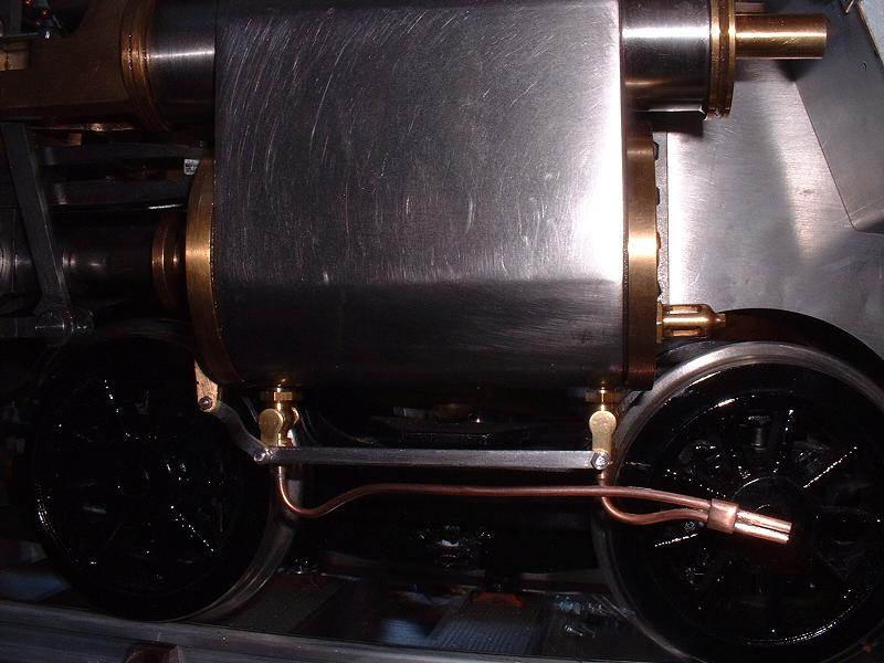 16/2/07 Brian and Mick both emailed to say that Blackgates sell packs of copper washers of assorted thicknesses that can be used to lock the drain cocks (and other boiler fittings) at the correct orientation, so I'll order some of these. I've attached the drain cock links with 8BA steel bolts which fit snugly in the 6BA threaded holes of the drain cock levers. I tapped the links 8BA and fitted locknuts on the outside, but clearance holes and Loctite on the nuts would probably have served equally well.