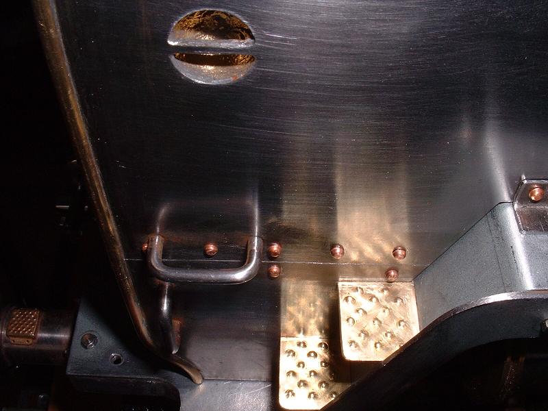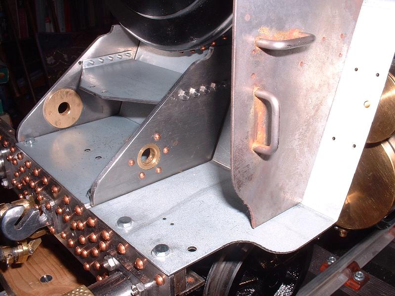 angle strip from 20 swg steel to fit on the outside of the smoke deflector to join it to the running board, replacing the brass angles supplied for the inside of the smoke deflector. This is fixed with 10 rivets in the smoke deflector and 5 10BA bolts in the running board.