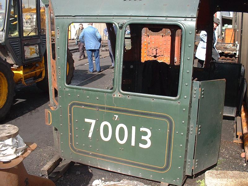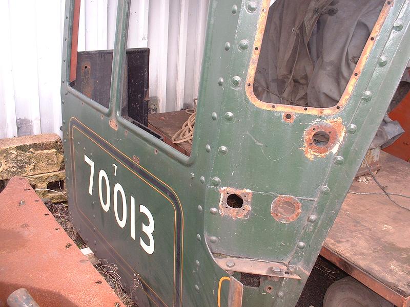 20/10/07 I've now soldered and filed all the window frames and most of the countersunk screws. At some later stage when I'm sure that no more filing is needed, I'll fit rivets in the correct positions. These photos that I took of 70013's cab at Loughborough show the different patterns on the left and right sides. For some reason 70013 doesn't seem to have the vertical row of rivets down the front of the left-hand (driver's) seat, as seen on the right side and on other Britannias. Some of the rivet positions clash with the countersunk screws, but I hope that the soldered filling will allow me to drill them nevertheless. I'll need to glue them in place to avoid disturbing the solder.