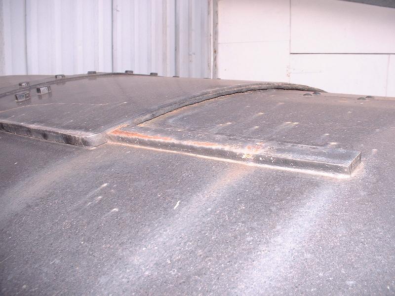 16/11/07 It's good to see that Modelworks have started updating their news page again, although there's no mention of the remaining kit 18b parts as yet. I've bent a sheet of 16g steel to make a new central section of the cab roof, to fit between my new rain strips. I did this by rolling a 12" x 9.5" piece to and fro over a drum about 10" in diameter, which worked very well. It's necessary to have a few inches to spare on either side of the section required, since it's impossible to bend the edges of the sheet this way. I'll now cut this to size for the fixed and removable sections, and also make dummy sliding roof hatches as shown here.