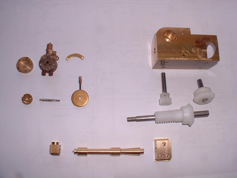 I decided to ease my way into this kit with trial assemblies of the steam brake valve, the reverser gearbox and the dummy vacuum ejector. This proved to be a dispiriting move, since there were problems with all three of them. The steam brake valve is a neat little device, but the squared ends of the spindle are much smaller than the square holes in the discs, and the spindle needs a thread and a very thin nut on the valve end to stop it pulling out. The nylon bevel gears for the reverser are too thick for the recess in the housing, and the spindle for the indicator wheel will not fit into its hole in the housing - it can be tapped half way in but will not turn. Also the 4-start worm gear will make the indicator wheel rotate several times between full forward and reverse - it really should only rotate less than one full turn, although this is a minor grumble and something I can live with. Finally, the ends of the dummy ejector central piece are distinctly larger than the holes in the end pieces. I'd be grateful if other builders could let me know if these faults are general, or specific to the machining of my kit.
