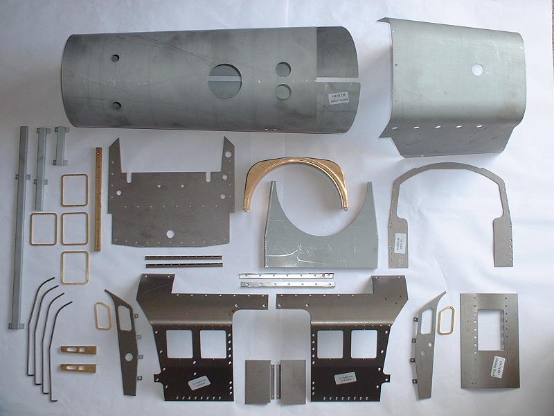 17/8/07 Modelworks tell me that the boiler cladding is now complete and the firebox cladding is cut out and ready to be bent to shape, the cab platework is being punched, and most of the other parts are already in their boxes ready for despatch, including the pressure gauges. There has been a delay in supply of the injectors caused by illness at the suppliers, so another source may need to be found.