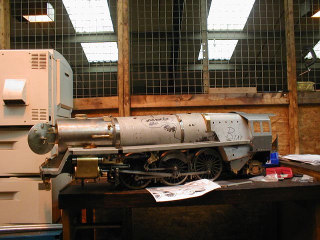 30/11/07 The next task is to finalise the fitting of the boiler cladding so that I can trim the running boards and spectacle plates to match. I also need to sort out the ashpan so that it fits close under the firebox, and I plan to make cladding for the boiler backhead - Ted has already done this for his model and has offered to lend me the pattern that he made to shape the sheet metal over. The main problem with the cladding is to decide how best to close or cover the gap between the upper throatplate casting and the boiler and/or firebox cladding, as described on 20/9 above. Richard R tells me that he has seen the cab kit from Model Engineers Laser and it looks good value at £56 for the Zintec version, although the plates are supplied flat and so need bending to shape. He also alerted me to the fact that Doug Hewson has updated his website with details of a new set of parts and drawings for a 5" Britannia, which I'm sure will be very detailed and accurate.
