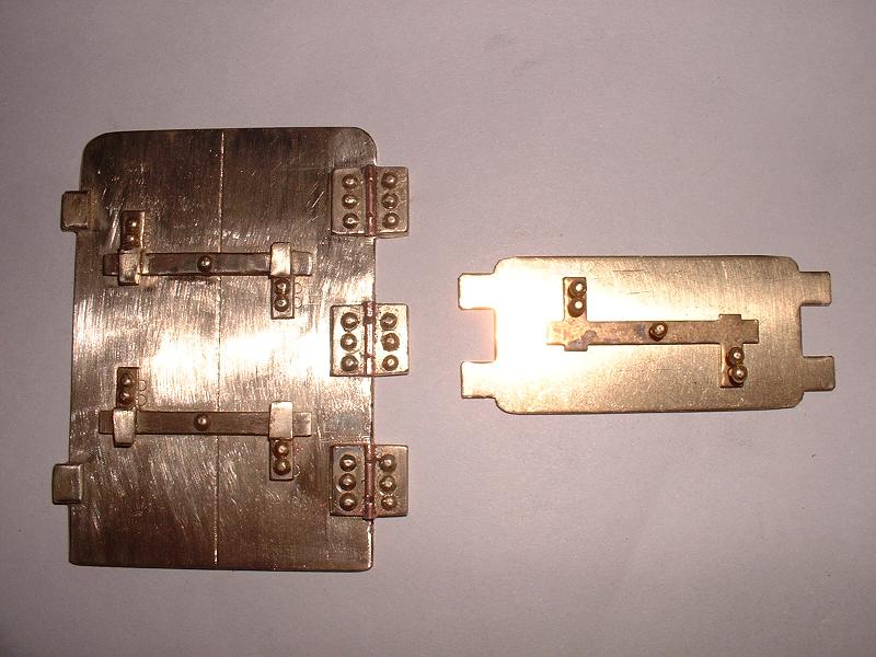 19/12/05 I continued detailing the small locker door, adding rivets to the hinges and fabricating a bolt to replace the locking bar.