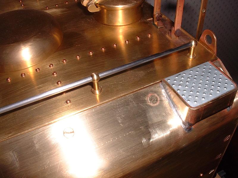17/7/06 I soldered the top steps to the tender, since the angled screws did not seem to hold them particularly securely. This also gives the impression of a welded joint. I then glued the dimpled plates in with Araldite.